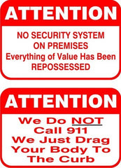 These pointed and timely stuckers will help alert those would be thiefs to the true nature of your affairs.